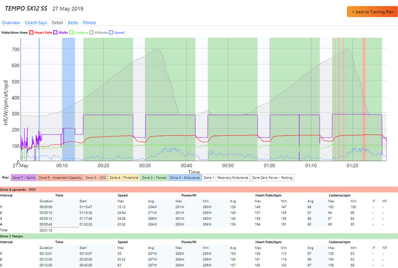 The computer analyses your workout - in this case blocks of 12 minute "Zone 3" intervals.