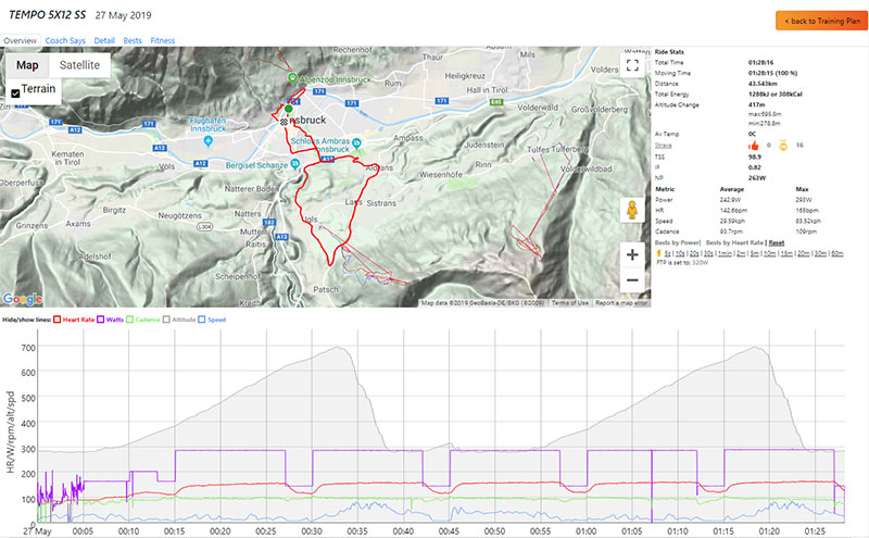4 Upload your workout data via Strava link or straight off your device. The computer then automatically analyses what you did and shows graphs, maps, stats and comments on your ride. Training is then adjusted as needed. See a sample page