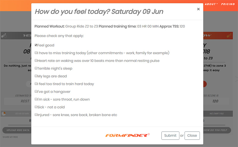 Formfinder uses computer AI to bring you pro cycling training. You answer some questions, set some goals and the training is automatically generated,